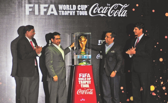 After daylong confusion about the venue of display of the FIFA World Cup trophy, it was confirmed last night that the display will take place at the Radisson Blu Water Garden Hotel, instead of at the Bangabandu National Stadium (BNS) as originally scheduled. Bangladesh Football Federation (BFF) president Kazi Salahuddin and Coca Cola’s country manager Debashish Deb briefed the media at the hotel shortly before 9:00pm saying that the display will take place at the hotel as there are logistical issues involved which are not feasible at the BNS. “This is due to logistics that we cannot afford at the BNS. It was our fault that we had fixed the programme at BNS, without really analysing all the logistical issues. We have been instructed from the Coca Cola head office in Atlanta and Zurich (FIFA head office) to hold it here at the hotel because they want to keep track of who is getting in and out of the venue,” said Salahuddin, claiming that it was not due to any security reasons.